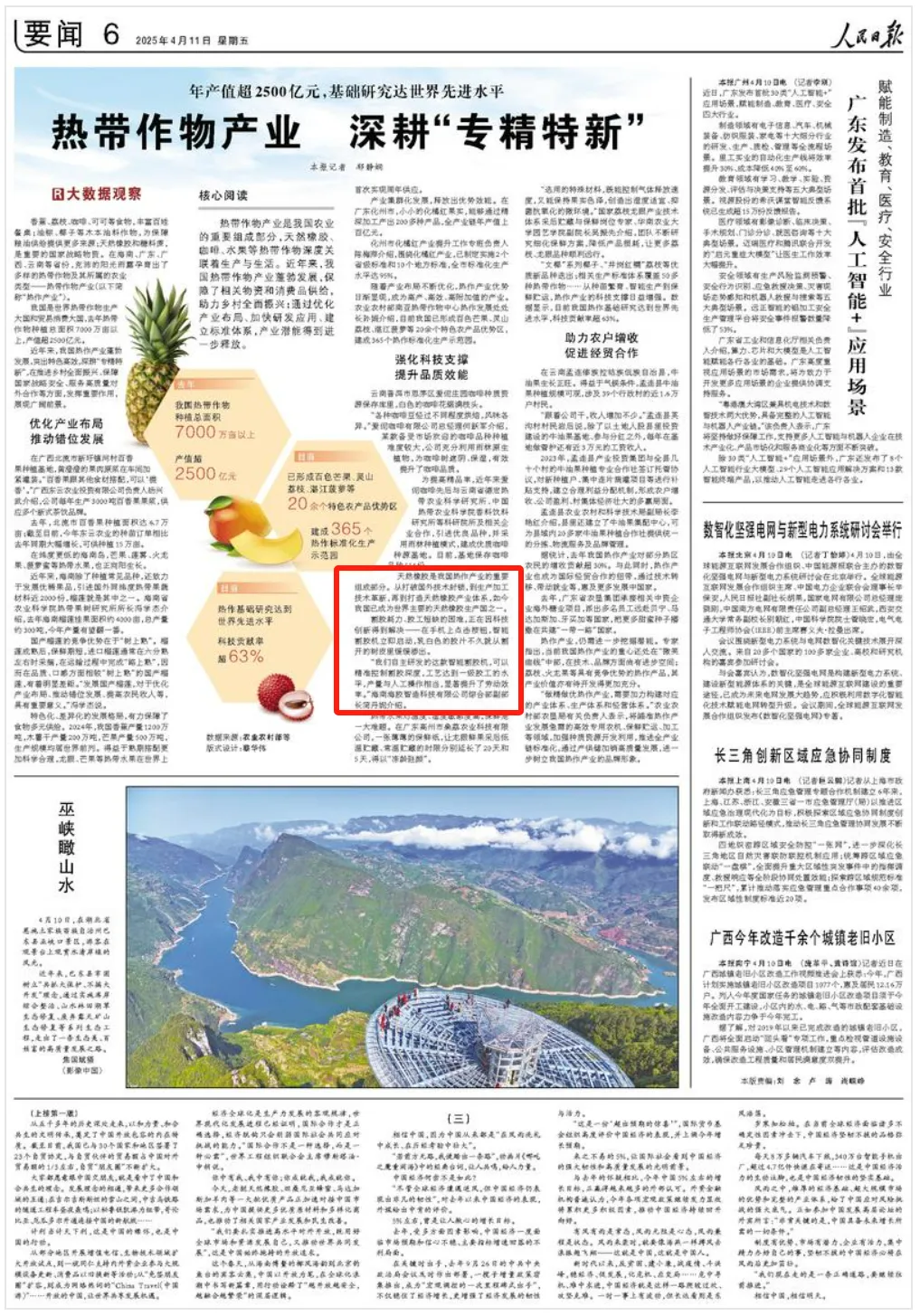 4月11日,《人民日?qǐng)?bào)》要聞版刊發(fā)《熱帶作物產(chǎn)業(yè) 深耕“專精特新”》,重點(diǎn)提及海南橡膠的智能割膠機(jī)研發(fā)成果